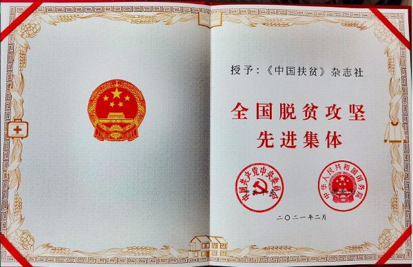中国扶贫杂志社全体就是这“了不起”当中的一支突击队、轻骑兵,在脱贫攻坚战场上奋勇当先,全力以赴贡献出一份特殊的“媒体力量”,并荣获“全国脱贫攻坚先进集体”荣誉称号。