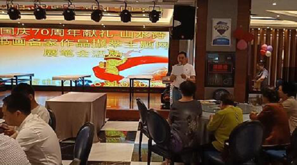 日前,绿水青山金山银山·国庆70周年华诞献礼主题网展《中国山水诗书画名家作品撷萃》书画笔会活动,在兰州大雁城--川味香礼宴酒店举行。