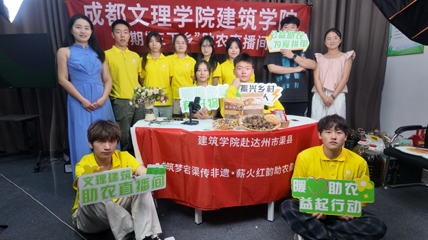 成都文理学院建筑学院“筑梦宕渠传非遗·薪火红韵助农桑”暑期“三下乡”实践队,在四川达州渠县电子商务服务中心开启公益助农直播,以“农货推广+文化传播”双模式为当地特色产品拓宽销路,用青春力量助力乡村振兴。